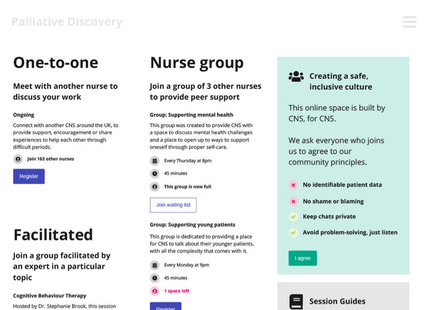 I helped St Christopher's Hospice understand their nurses' needs for professional development, and prototyped key improvements for their new learning platform.